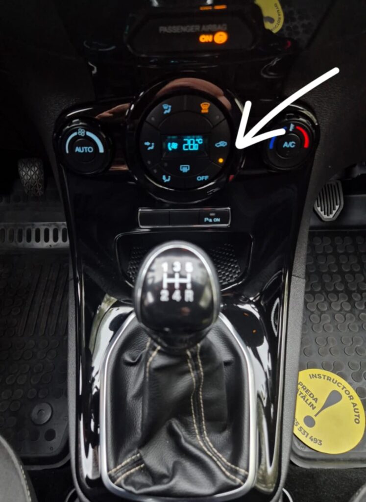 Când îl apeși, sistemul de ventilație oprește admisia de aer din exterior și recirculă aerul deja existent în habitaclu.