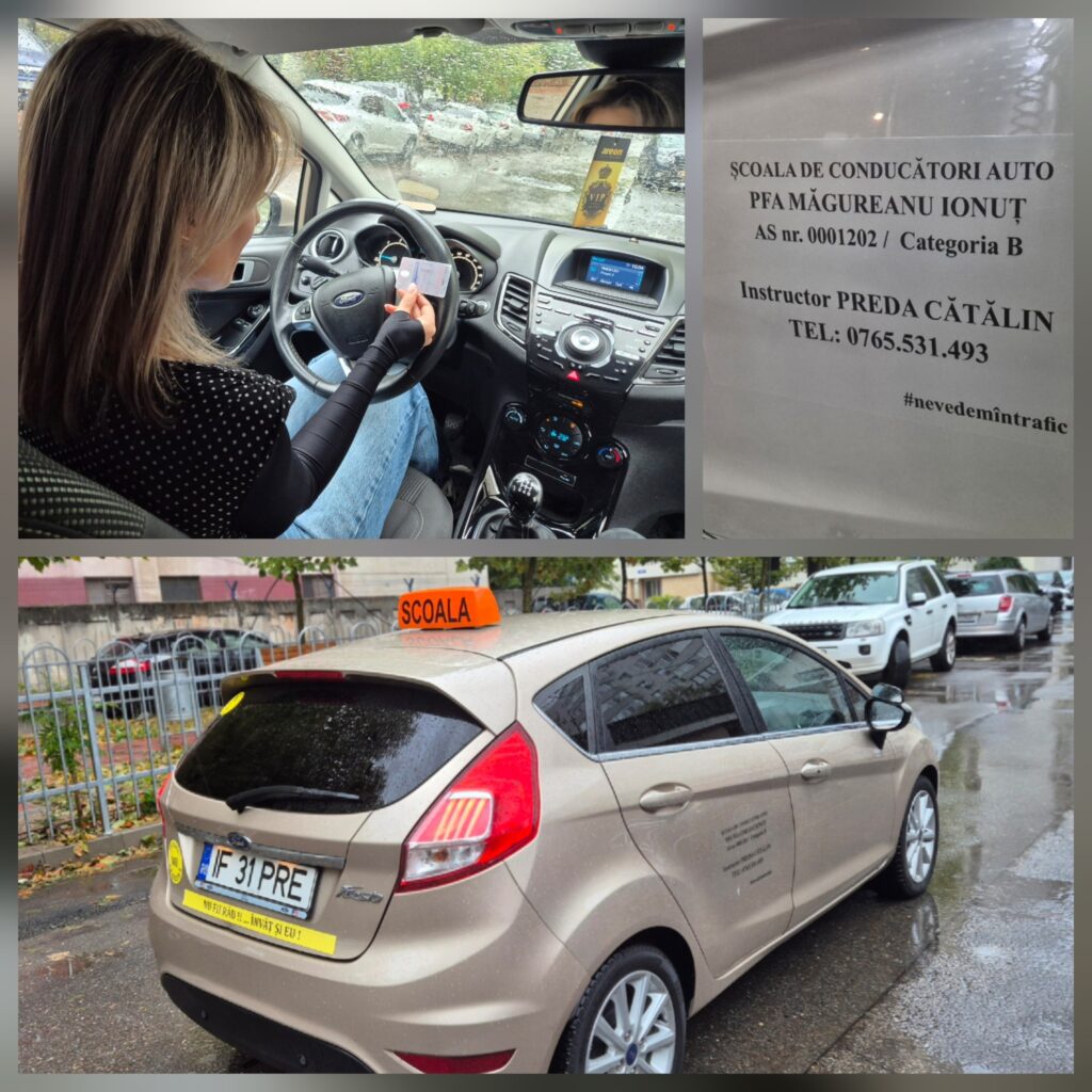 Am început încet, într-o parcare mare, cu o recapitulare, câteva desene și explicații teoretice, câteva manevre ușoare, apoi am ieșit în trafic!
